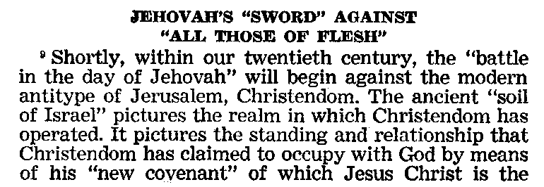 24/ From about 1971 I felt that Jehovah was controlling my movements or actions. In late 1974 I rebelled against it and wanted to make my own errors. Also, somewhere in my mind, I had to push myself on and endure a nervous breakdown in order to have a good Spring clean to eradicate all of my funny ways. From the late 1960s I developed the feeling that I would fall down exhausted before Armageddon arrived (God's war to end wickedness which Jehovah's Witnesses have always claimed, since the nineteenth century, is not far off from occurring). Well, it happened to me.