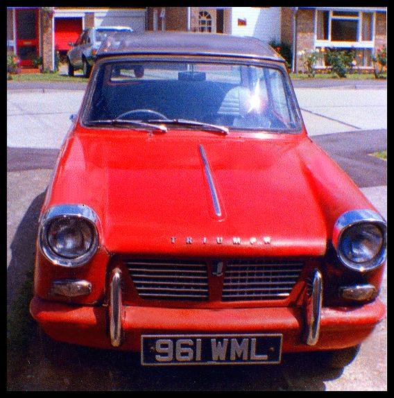 The author's 1960 Triumph Herald, circa 1989. He owned it from early 1970 until 1990 or 1991, and he has not been well enough to drive since the first week of December 1974.